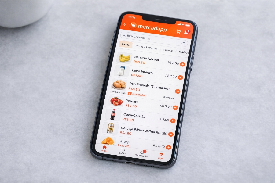 Supermercado na palma da mão dos clientes